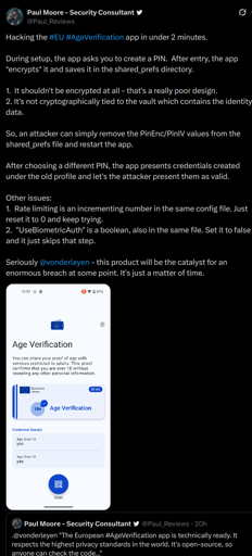 geneva_convenience@lemmy.ml · 5 days agoNew EU age verification app hack speedrun recordplus-squarelemmy.mlimagemessage-square1linkfedilinkarrow-up197arrow-down11